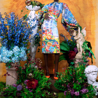 Radiant, colorful, magnificent, graceful—there are not enough words to describe the eye-catching aesthetic of Sai Sankoh’s new ‘Portrait of a Lady’ Resort 2020 collection which was just released on July 7. The Dallas-based Sierra Leonian designer and fashion consultant brought the vision of the collection to life in a dreamy, floral-themed shoot with vivid backdrops and bright-colored, polychromatic style.